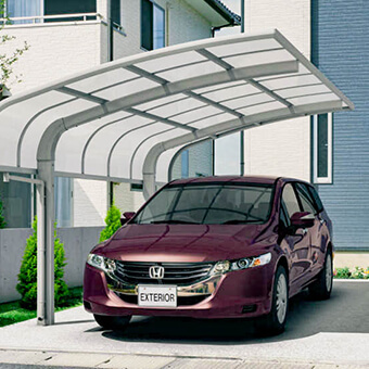 透明や半透明の屋根材を使ったカーポートで、明るさを保ちながら日差しや雨を防ぎます。採光性に優れているため、庭や玄関まわりが暗くならず、住宅の雰囲気にもなじみやすいのが特徴です。軽量でコストパフォーマンスも良く、もっとも多く選ばれているタイプです。