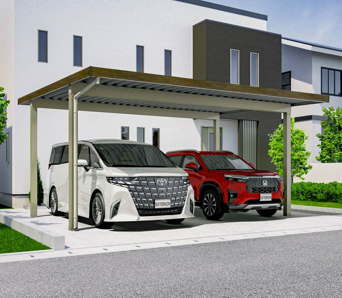 各メーカーの商品から、住宅の外観やご要望に合わせて幅広くお選びいただけます。カーポートや車庫に物干し竿を付けたい、横に目隠しを設置したいなど、さまざまなオプションもご用意しています。